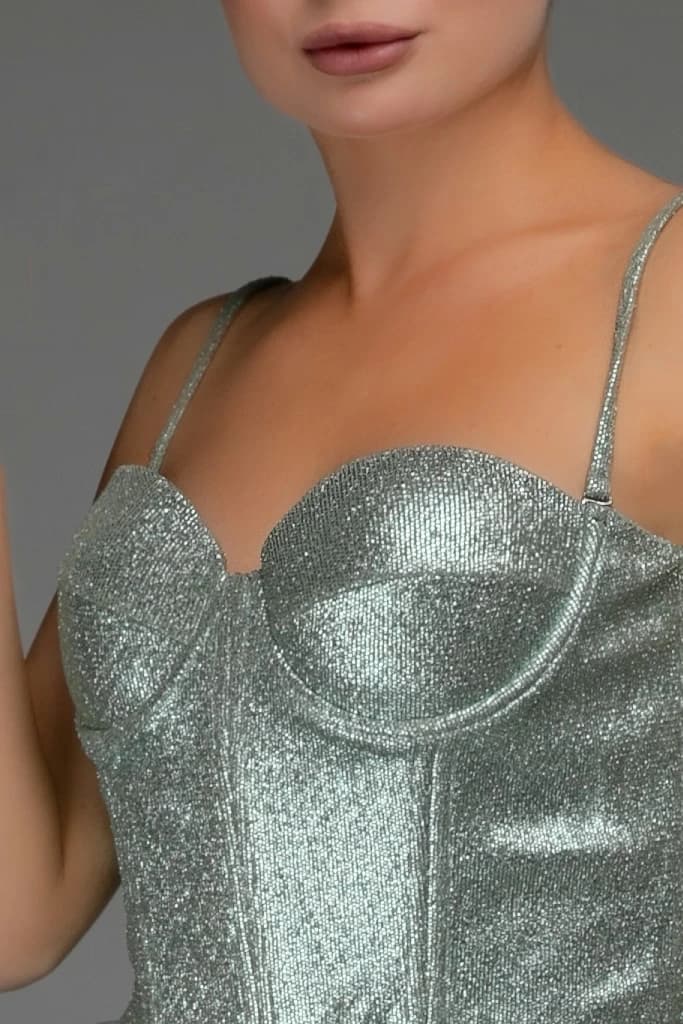 Top da sera in raso con scollo incrociato e spalline regolabili.