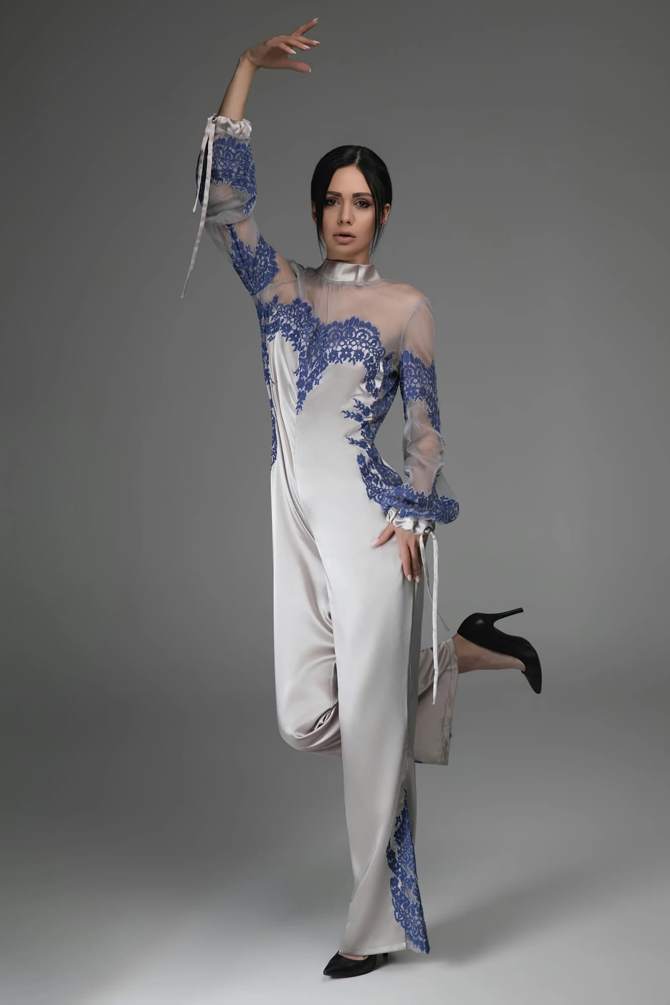 Tuta intera raffinata con ricami in nero